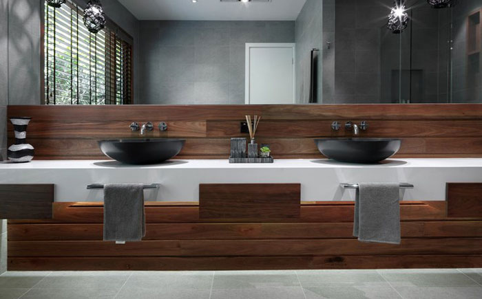 - Дерева. Розкішні умивальники, екологічні та міцні. Чаші з дерева вкриваються спеціальними розчинами, що не дозволяють раковині протікати або розсихатися. Використовують такі моделі в класичному інтер'єрі, і коштують вони чимало.