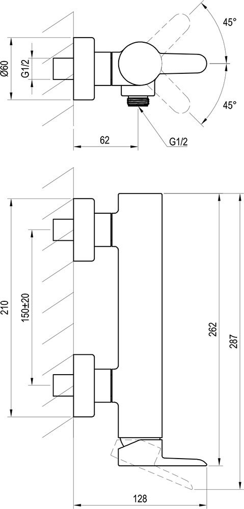 - висота змішувача: 150 мм;