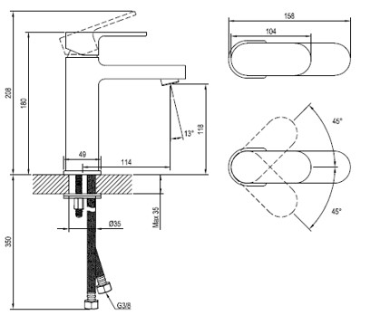 - гнучкі з'єднувальні шланги завдовжки 450 мм, розмір G3/8;