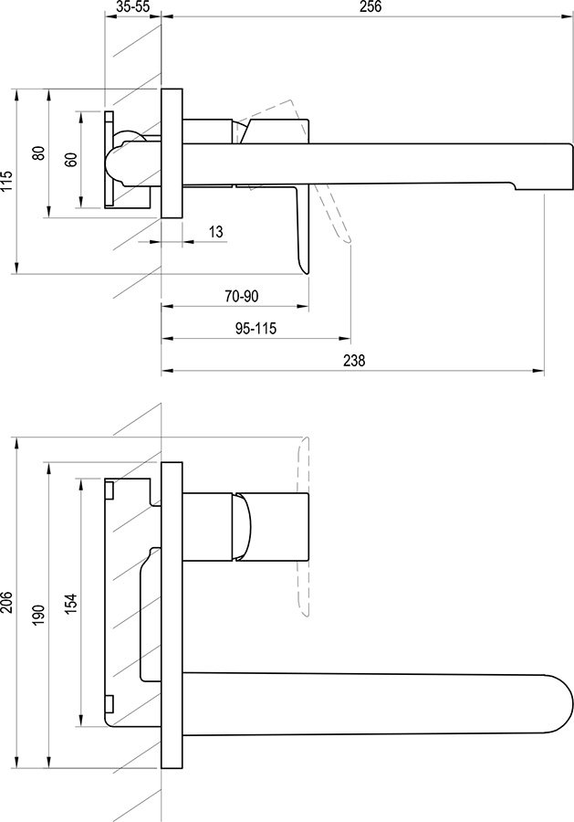 - важільний змішувач для прихованого настінного монтажу;