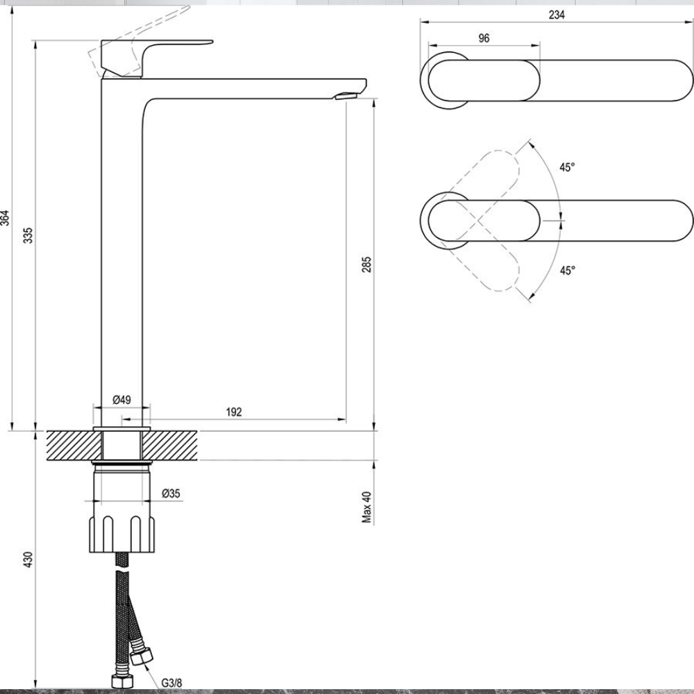 - з'єднувальні шланги: гнучкі, 700 мм, діаметр G3 / 8;