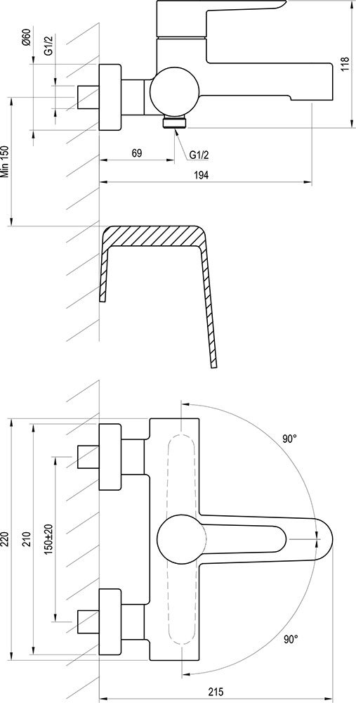 - витрата (при 0,3 МПа): ванна 19 л/хв, душ 11 л/хв;