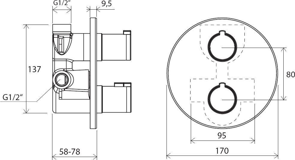 TE 061.00 Термостатичний змішувач прихов. монтажу з перемикачем