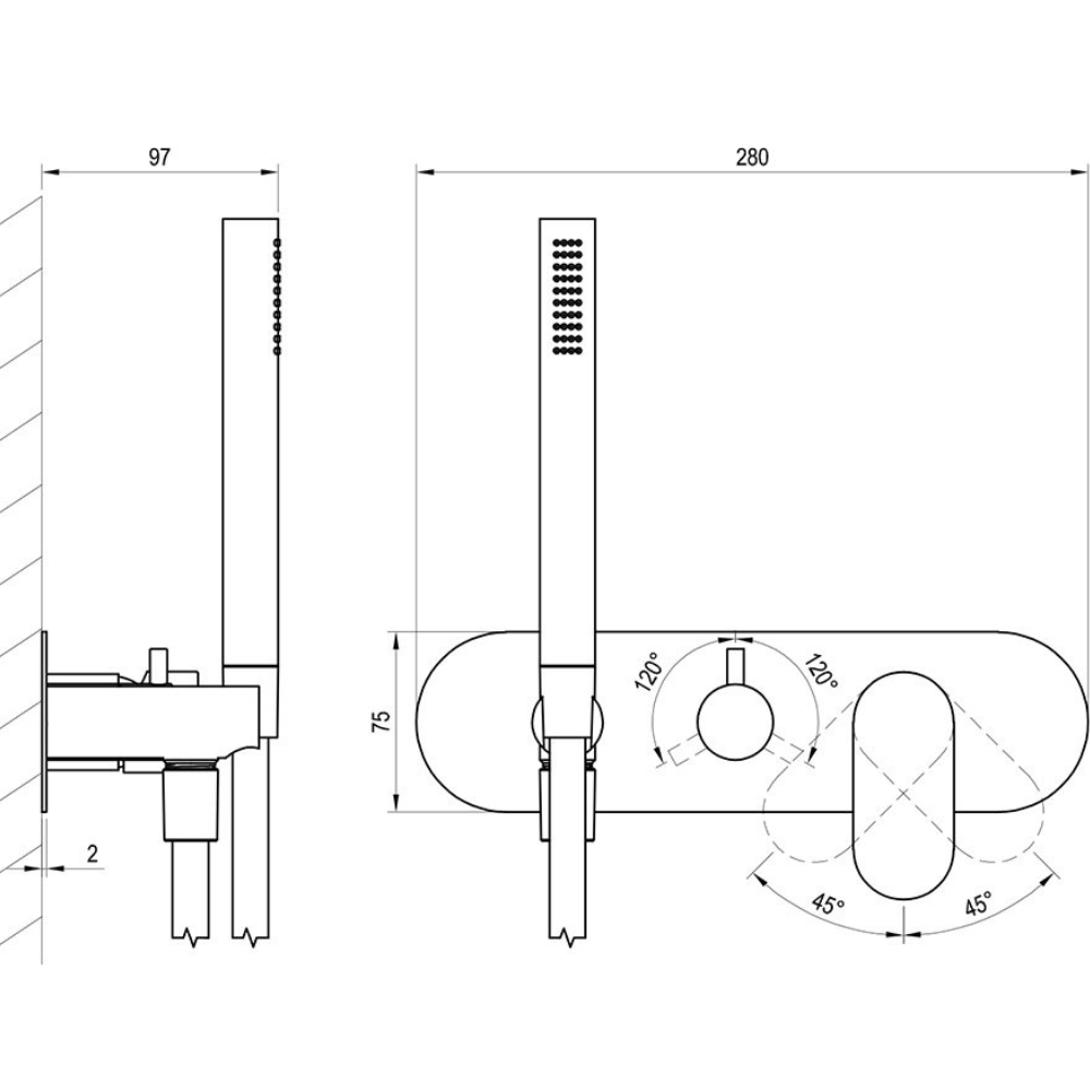 - -для душових кабін із верхнім душем та лійкою ручного душу наприклад, для масажних форсунок