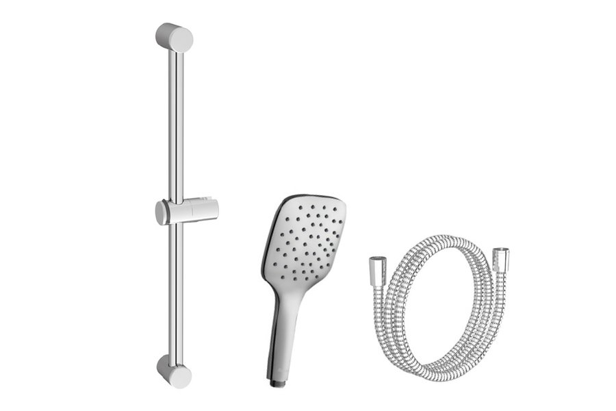 Настінний гарнітур для душу Ravak 923.00 складається зі штанги з рухомим тримачем, квадратної ручної лійки з хромованого ABS-пластика та гнучкого шланга з міцного пластику. Виріб підходить для всіх термостатичних змішувачів, змішувачів для ванни, душу, прихованого монтажу Ravak. Набір можна встановлювати у всіх душових куточках Ravak.