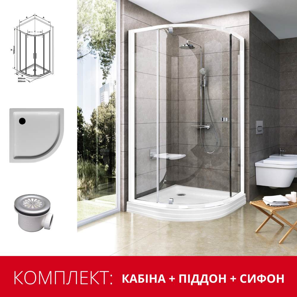 - Напівкруглий піддон: 900 х 900 мм, R 500 мм;