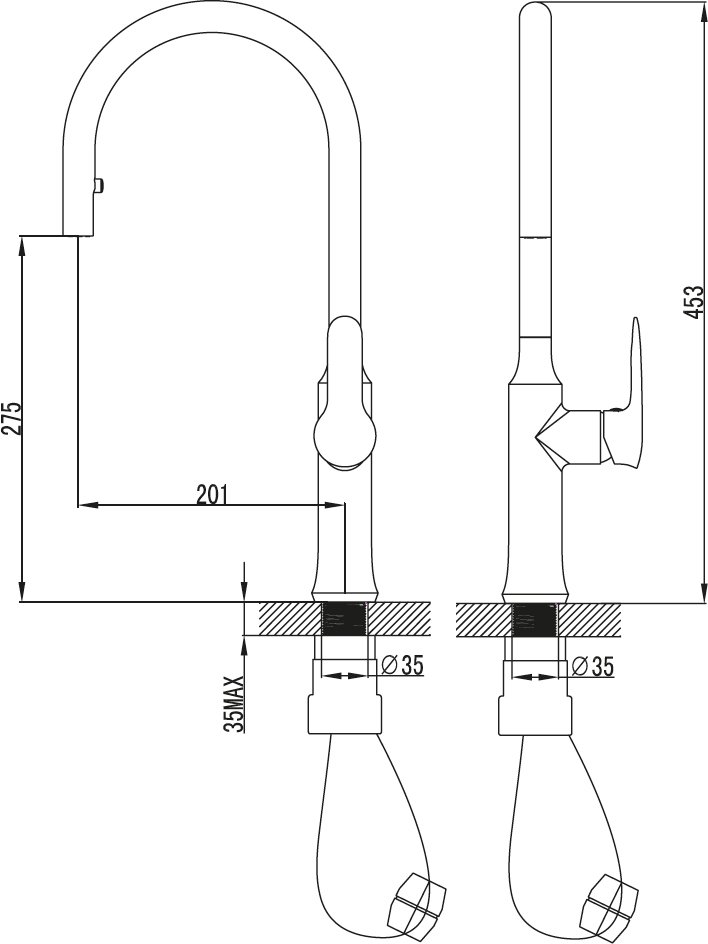 Змішувач, гнучкі шланги підведення води. Інструкція, комплект кріплень, висувна лійка |