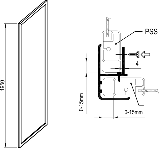 Нерухому стінку PSS можна комбінувати з душовими дверима заввишки 1950 мм (SDZ2, SDZ3, SDOP) для створення Г-подібного душового куточка. За допомогою двох нерухомих стінок PSS і душових дверей (SDZ2, SDZ3, SDOP) утворите П-подібний душовий куточок.Характеристики