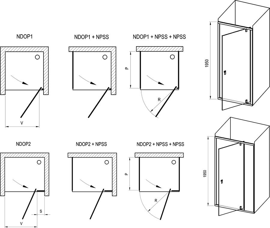 Стінка Ravak Nexty NPSS-90 в комбінації з душовими дверима Nexty дозволяє створити зручний душовий куточок квадратної чи прямокутної форми. Для П-подібного куточка знадобляться дві нерухомі стінки NPSS і двері Nexty.