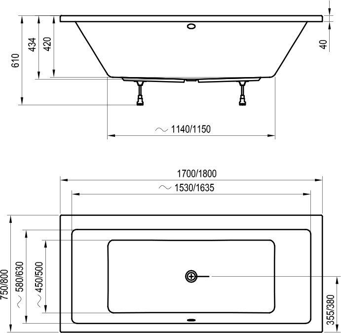 - Комфортне купання для двох завдяки центральному зливу й ергономічному нахилу обох спинних частин ванни