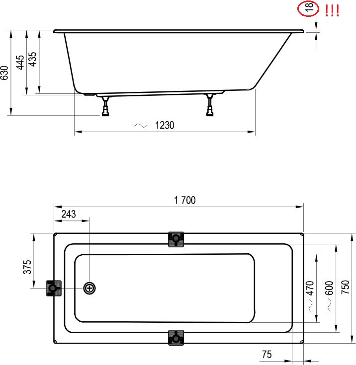 - аксесуари: опора, панель (передня, бічна) кріплення, стічний комплект для ванни;