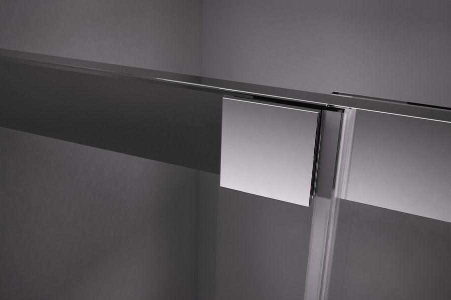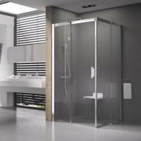 Виріб складається з двох рівних нерухомих частин і двох рівних рухомих частин, що утворюють розсувні двері. Встановлюється в облицьований кахлями кут ванної кімнати на піддони RAVAK Perseus Pro Chrome або безпосередньо на підлогу з вбудованим душовим каналом.