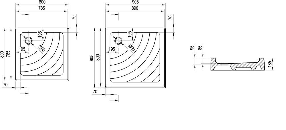 Душовий піддон Angela підходить для душових кабін SRV2-S + SRV2-S, ASRV3 + ASRV3, BLRVK2 + BLRVK2, BLRV2 80, 90, SMSRV4, BSRV4 80, 90, BSDPS, 10RV2 + 10RV2, 10RV2K + 10RV2K і для душових кабін, створених за допомогою душових дверей ASDP3, SDZ3, SDOP, PDOP1, BSD2, BLDP2, SMSD2.