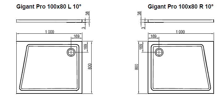 Піддон Gigant Pro 10 ° зі штучного каменю підходить для душових кабін 10RV2K + 10RV2K, 10DP2 (+ 10PS), 10DP4 (+ 10PS), SRV2-S + SRV2-S, ASDP3 + APSS, SDZ3 + PSS, SDOP + PSS, BLRV2K + BLRV2K, BLDP2 + BLPS, BLDP4 + BLPS, PDOP2 + PPS, CRV1 + CRV1, CRV2 + CRV2, CRV2 + CPS, SMSD2 + SMPS, BSDPS або для душових дверей ASDP3, SDZ3, SDOP, BLDP2, BLDP4, PDOP1, PDOP2, 10DP2 , 10DP4, CSD1, CSD2, CSDL2, SMSD2, BSD2, BSD3.