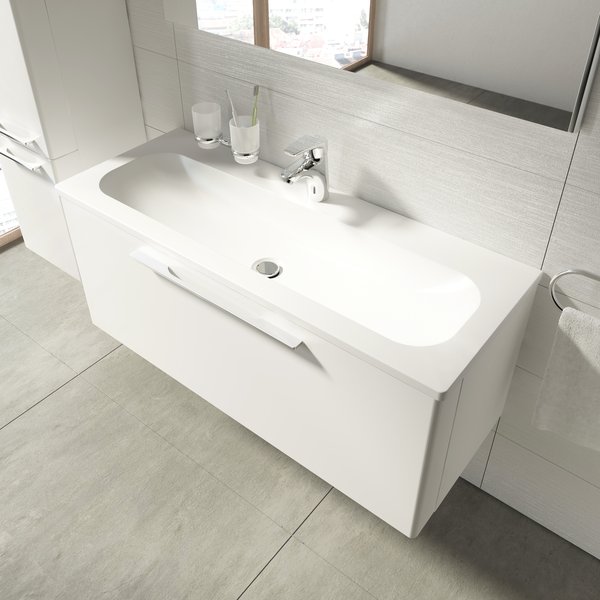 Под длинный шкаф брала умывальник Ринг 1000 от Равак, чтобы значительной мерой сохранить просторность ванной. Малая глубина позволяет удобно монтировать раковину сверх шафа, не отнимая изнутри обильную часть вместительности. Длина сопутствует улучшению эксплуатации, так как даже мелкую стирку могу провести. С не убиваемым покрытием вовсе не страшусь покупать в ней кота, когти котрого не навредят текстуре. Скол при разбитии чашки не сформировался, что нынче редкость. В плане износостойкости поверхности умывальник отличился заметно, ведь ни косметика, ни гигиенические средства не способны образовать пятна желтизны. В санузле модель прилично смотрится, а пользоваться комфортно, причем недостатки отсутствуют!