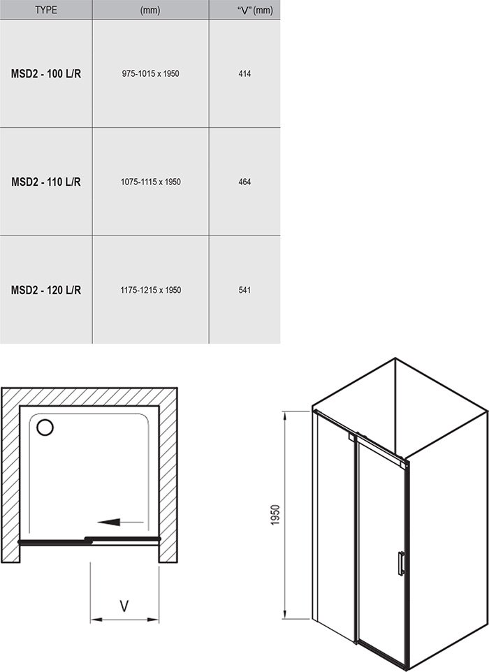Характеристики Душові двері Ravak Matrix 120 см MSD2-120 L сатин+transparent