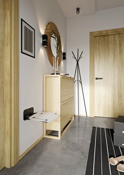 Відкидне сидіння для душового куточка Ovo B II можна також встановлювати в вузьких передпокоях або коридорах, зонах відпочинку на відкритих майданчиках.