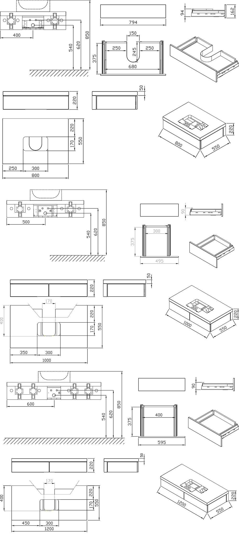 Тумба встановлюється на стіні та постачається з монтажним набором (гвинтами, петлями, пробками). Рекомендуємо поєднувати виріб із накладними умивальниками, пеналом, дзеркалом концепції Formy та іншою продукцією Ravak.