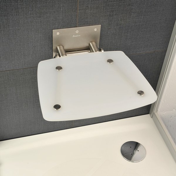 - сиденья. Они повышают комфорт и безопасность принятия водных процедур. Особенно актуальным такой аксессуар будет для пожилых людей, инвалидов, тех, кто имеет проблемы со здоровьем и не может долго стоять. Сиденья от Ravak способны выдерживать статические нагрузки до 150 кг. При необходимости их легко сложить;