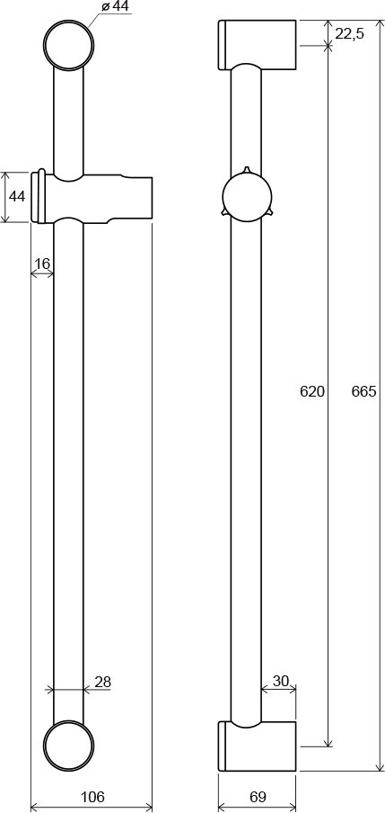 - Подвижный душевой держатель 972.00, хромированный, неподвижная штанга,