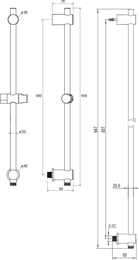 Описание Душевая штанга Ravak 975.00 60 см