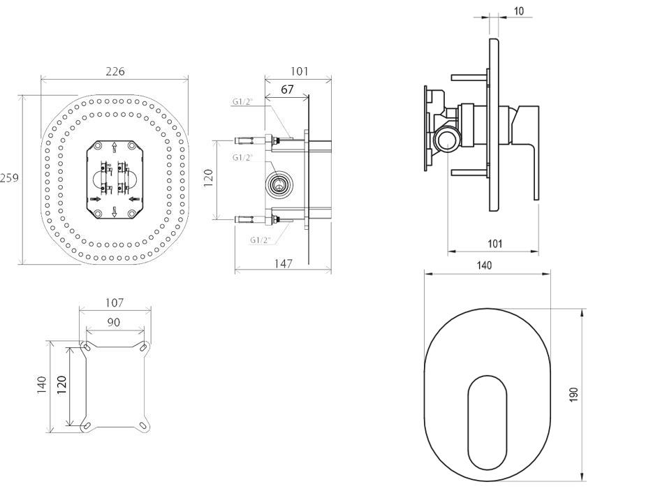Внешняя часть смесителя, Внутренняя часть смесителя для R-BOX, Комплект креплений для R-BOX |