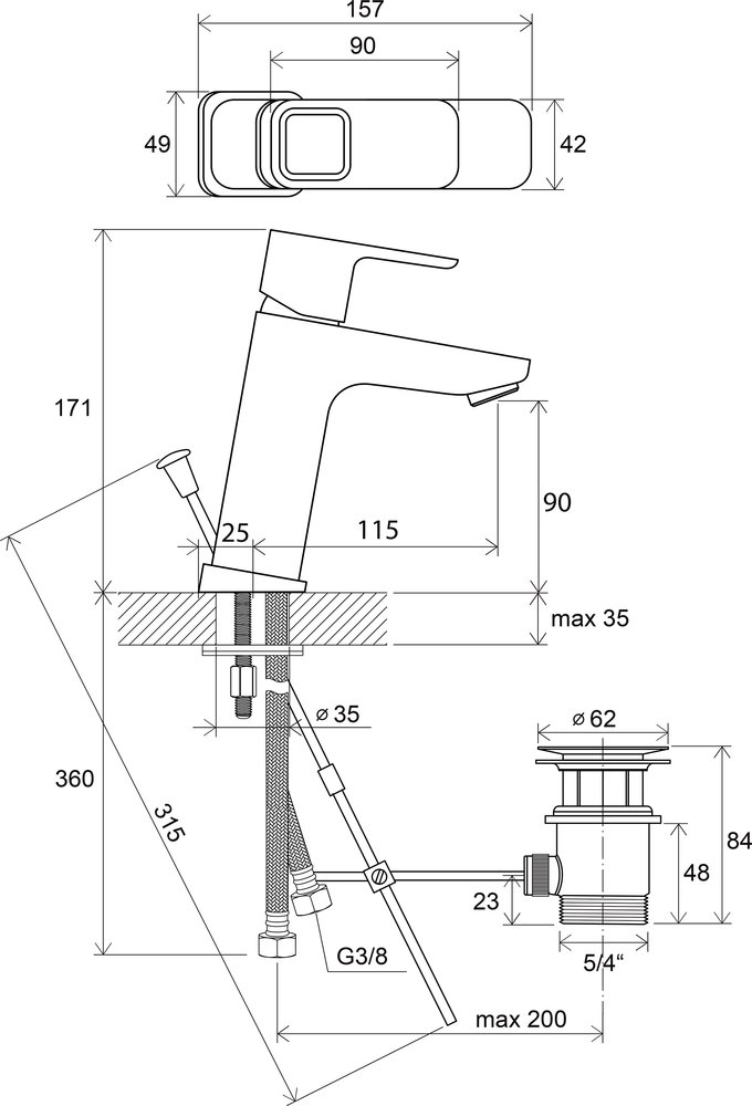 - со стержнем для донного клапана и сточным комплектом