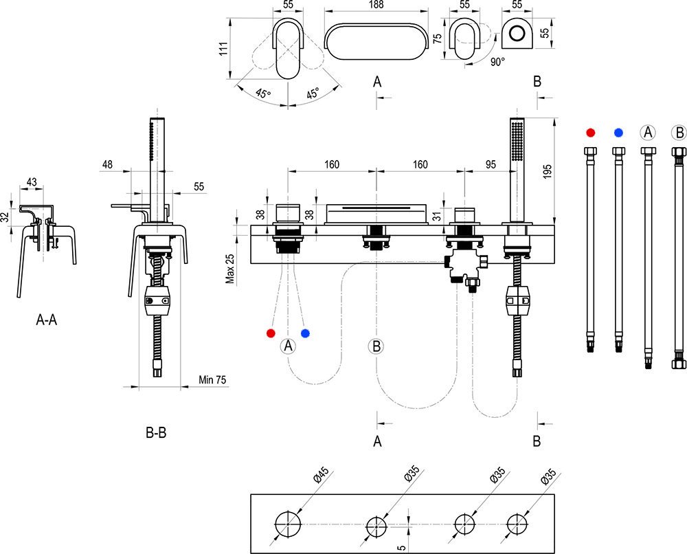- переключение ванна/душ с лейкой