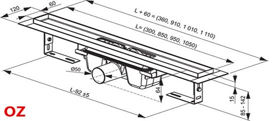 - Регулируемая высота канала 85-142 мм.