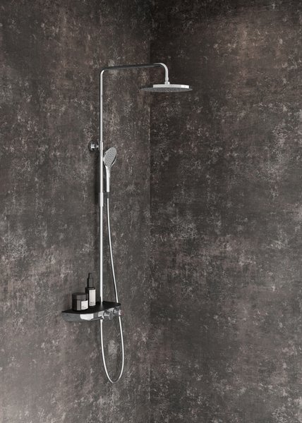 Душевая штанга с термостатическим смесителем имеет ряд инновационных функций и режимов. Используйте поворотную ручку с функцией termo, чтобы установить желаемую температуру воды. Функция Stop просто управляет переключением воды, чтобы остановить или возобновить подачу воды сразу же во время принятия душа. Верхний душ можно регулировать по высоте или поворачивать в стороны. Переключение между верхним душем и лейкой ручного душа возможно с помощью поворотного регулятора, расход воды меняется непрерывно, т.е. обе функции смешиваются одновременно до достижения конечного положения.