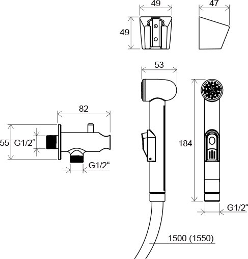 Гигиенический душ, держатель для душа, переключающий вентиль |