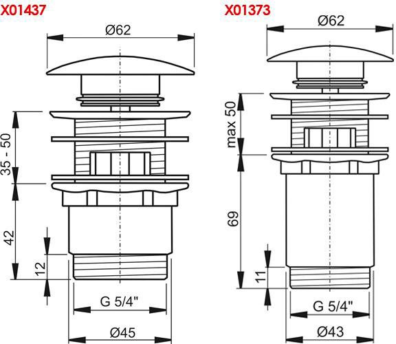Универсальный слив для умывальника ClickClack:- предназначен для умывальников со сливом диаметром 46 мм;