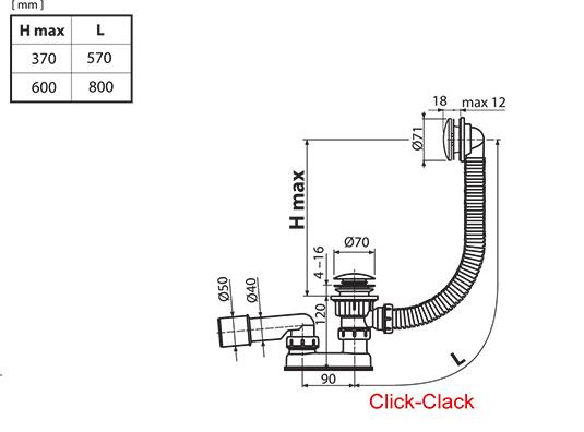 Описание Сифон для ванны Ravak 570 Click-Clack