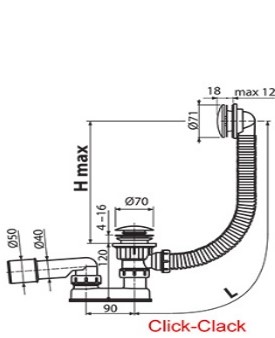 Система ClickClack - нажатием на крышку сифона слив воды остановится, а повторным нажатием продолжится. Предназначен для ванны BeHappy, но подходит и для других типов ванн.