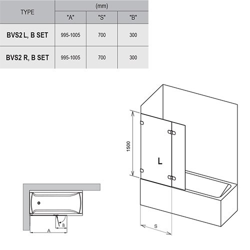 Штора для ванны поставляется в составе: неподвижная часть, подвижная часть и планки в одной упаковке, во второй упаковке (B SET) - петли соответствующего варианта, крепления и монтажный набор. Обе части изделия (стекла + B SET) заказываются отдельно. Окончательная регулировка изделия возможна до 1,5 см в каждую сторону. Подходит для классических прямоугольных ванн с ровным передним бортом. Подвижная часть шторы открывается наружу ванны. Стандартная высота изделия - 1500 мм. Левый и правый варианты - согласно расположению петель на стене.